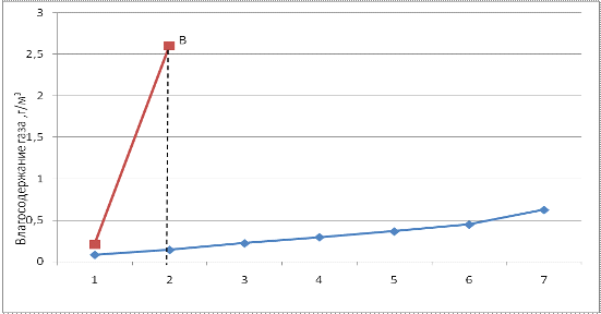 выходе из УКПГ значительно превышает требуемое влагосодержание 0,03 г/м3.