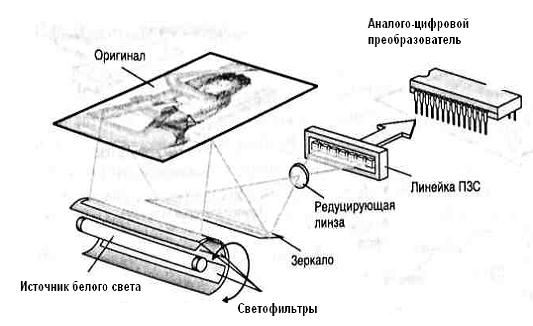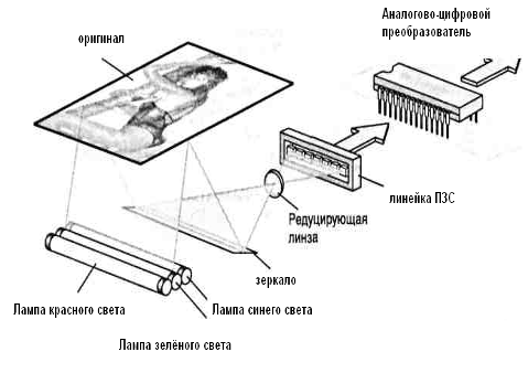 света и оригиналом. Сканируемое изображение освещается белым светом не