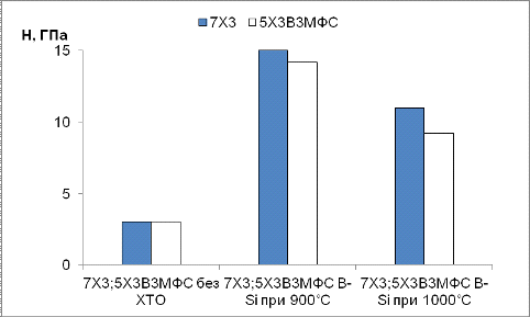 (13-14 ГПа), но значительно выше, чем твердость поверхности без ХТО - всего