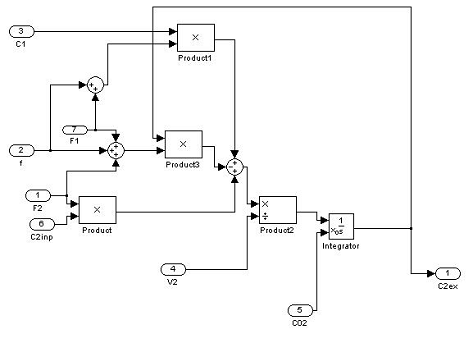Блоки Diffur1 и Diffur2 - дифференциальные уравнения концентраций.