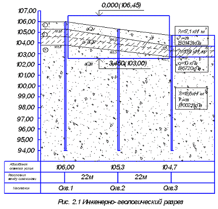 слоя грунта, заглубляясь в третий. Глубина скважин - м.