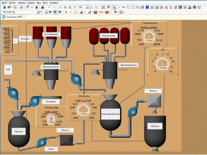 Внешний вид разработанной АСУТП процесса производства жидкого моющего