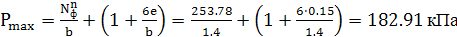 Давление под подошвой фундамента от действия расчетных нагрузок