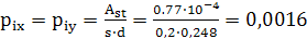 Определяем коэффициенты армирования в обоих направлениях, класса S500