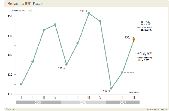 динамики валового внутреннего продукта России за 2007 - 2009 годы