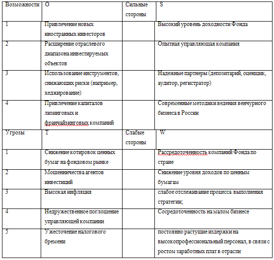 того, на примере венчурного фонда необходимо рассмотреть основные внутренние и
