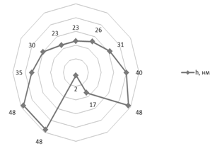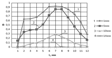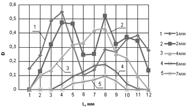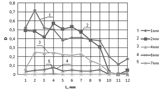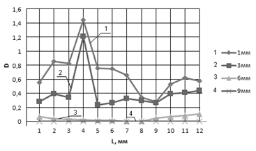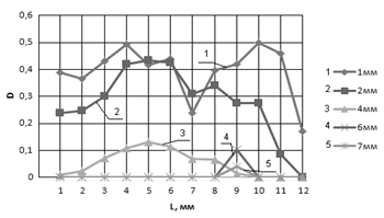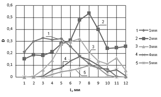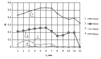 Рисунок Б.2 Распределение оптической плотности по сечению отверстия ( с