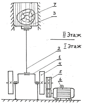 Рисунок 1 - Общая схема вертикальной лесопильной рамы 1 - коленвал; 2 -