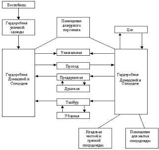 и помещение санитарно-бытового назначения размещаются на пути движения рабочих;