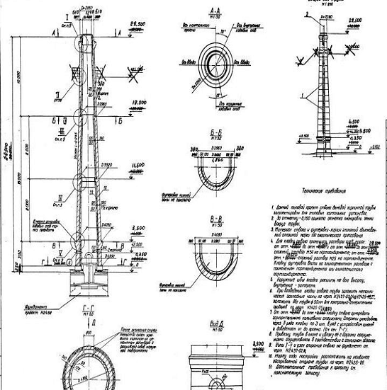 Типовой проект 907-2-101 Дымовая кирпичная труба