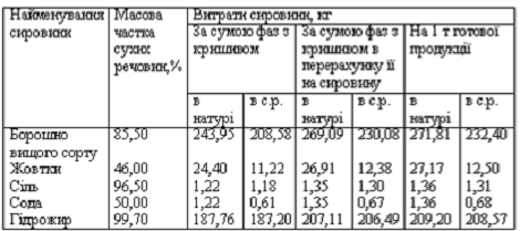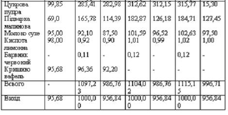 3.2.2 Розрахунок витрат сировини для вафель "Малинові"