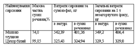 3.1.3 Розрахунок уніфікованої рецептури при виробніцтві ірису
