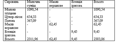 3.2.3 Розрахунок витрат сировини для ірису "Прима"