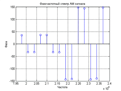 ее вход АМ сигнала. Построить графики АЧ и ФЧ спектра АМ сигнала на выходе.