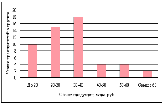 предприятия по группам с объемом продукции от 15,0 до 30,0; от 30,0 до 80,0; от