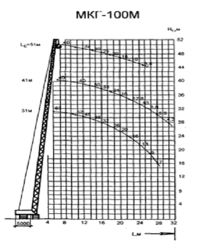 крана МКГ-100М и ДЭК-50. По графикам грузоподъемности данные монтажные краны