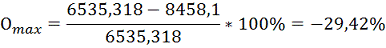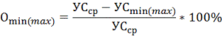 максимального значения от среднего значения, %