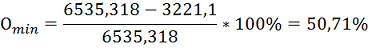 минимального значения от среднего значения, %