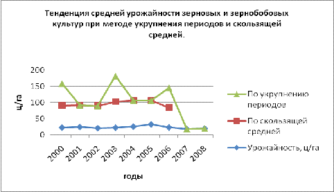 тенденции изменения валового сбора и урожайности зерновых и зернобобовых
