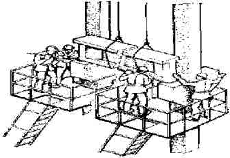 монтаже стропильных ферм пролетом 24 м М1-М-4, С - рабочие места монтажников и