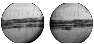 оптической микроскопии выглядел, как отдельные продольные царапины неправильной