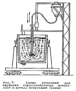вдувание в металл порошкообразных материалов (СаО, СаО + CaF2, СаС2,