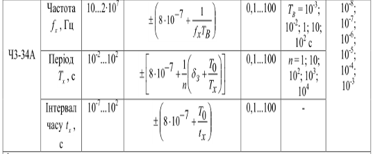 Основні технічні характеристики частотоміра Ч3-34