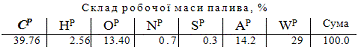 Теплової енергії, кДж/кг Палива-кам’яного вугілля Богословського кг/кг