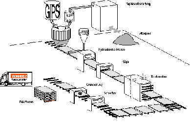помощи гильотины. Далее листы гипсокартона снимаются конвейером перехода и
