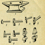 При цьому поковки тримають кліщами на ковадлі 1 і ручником 2