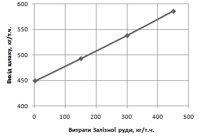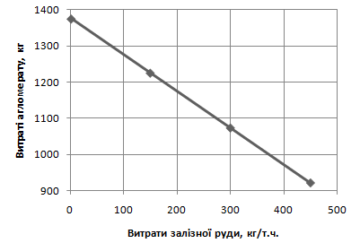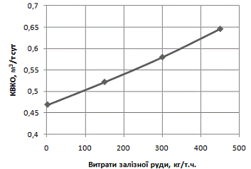 Рисунок 3.7 - Вплив витрати залізної руди на