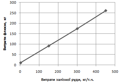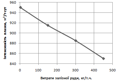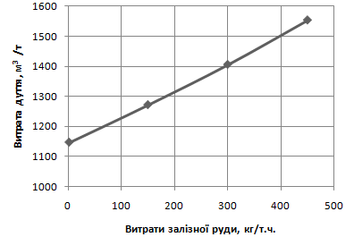 залізної руди рівному 2 кг/т.ч., чим при витраті залізної руди рівному 450