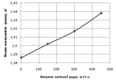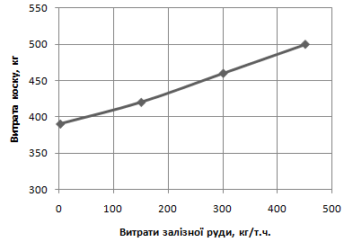 Рисунок 3.12 - Вплив витрати залізної руди на