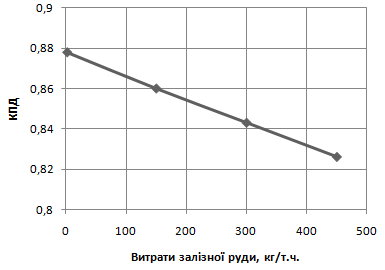 Рисунок 3.11 - Вплив витрати залізної руди на КПД