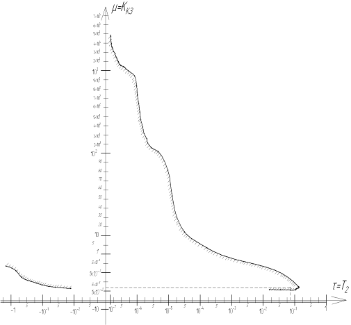 времени электродвигателя постоянного тока - Т2 (D-разбиения по двум параметрам: ККЗ,Т2)