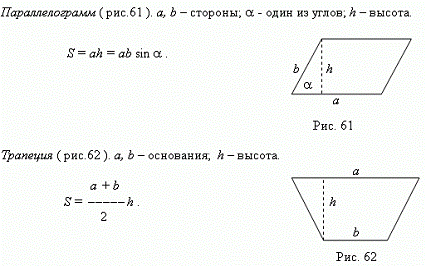 отдельные фигуры (квадрат, прямоугольник, ромб, параллелограмм, трапеция, четырёхугольник,