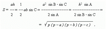 стороны; a - основание; h - высота;, B, C - углы, противоположные сторонам a,