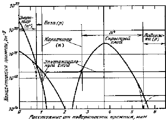Рис. 3П. Диффузионный профиль поперечного сечения интегрального транзистора