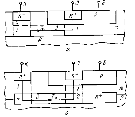 коллектора без n+-скрытого слоя (а) и с n+-скрытым слоем (б).