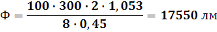 гдеL- длина помещения, В -глубина освещения, равная при одностороннем освещении