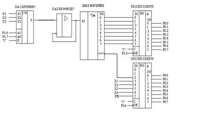 является коммутатором (аналоговым мультиплексором) аналоговых входных сигналов U1-U3. Переключение входных каналов