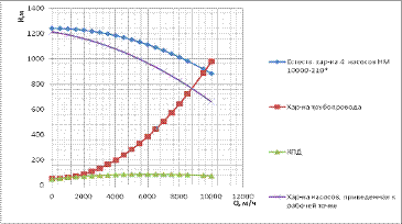Рисунок 3. Характеристика H-Q трубопровода и суммарная