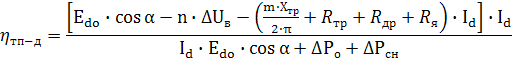 КПД системы ТП-Д зависит как от нагрузки на валу двигателя, так и от скорости