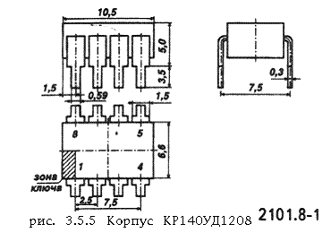 распространенный ОУ типа КР140УД1208. Он представляет собой микромощный
