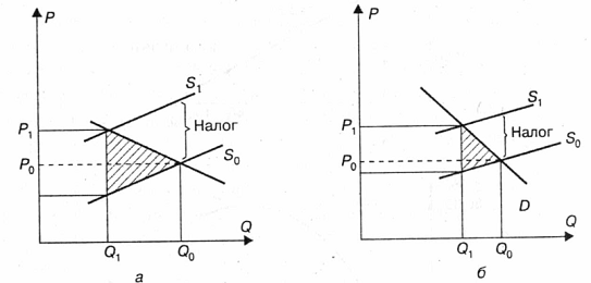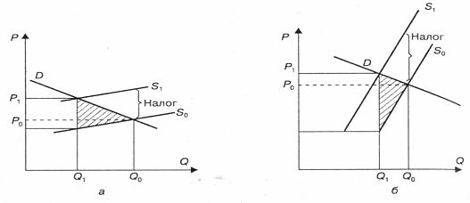 Рис. 2.3 Распределение налогового бремени при эластичном (а) и