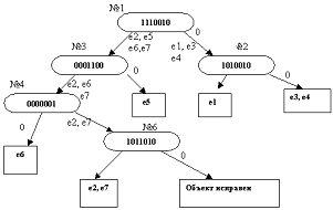 В таблице покрытий имеются неразличимые неисправности е3 и е4, е2 и е7.