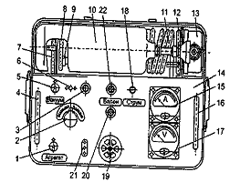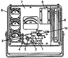 вольтметр, амперметр, мікроамперметр, ватметр, лічильник імпульсів, тумблери,
