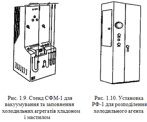 холодильних агрегатів, визначення дефектів і заповнення агрегату холодильним