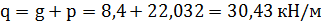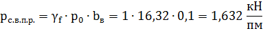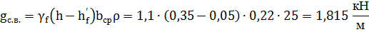 учета нагрузки от собственного веса ригеля и нагрузки на его ширине равной 0,3