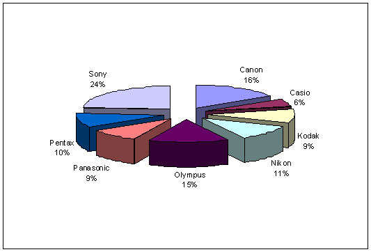 Как показывает диаграмма 2.1. большой сегмент занимают фирмы Sony, Canon, Olympus. Это связано с